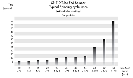 T-DRILL Tube End Spinner für das Verschließen, Verjüngen und Aufweiten von Kupferrohr. Die maximale Reduzierung beträgt 70 %. SP-110 bearbeitet Rohre von 8 – 108 mm. Die typischen Anwendungen sind Rohre für Heizung und Klima. T-Drill Spinner arbeiten voll automatisch.